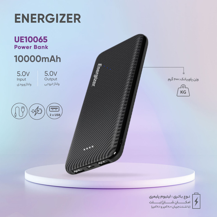 پاوربانک انرجایزر مدل UE10065 ظرفیت 10000 میلی آمپر ساعت