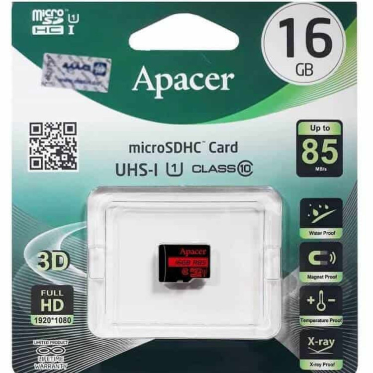 کارت حافظه microSDHC اپیسر مدل AP16G کلاس 10 استاندارد UHS-I U1 سرعت 85MBps